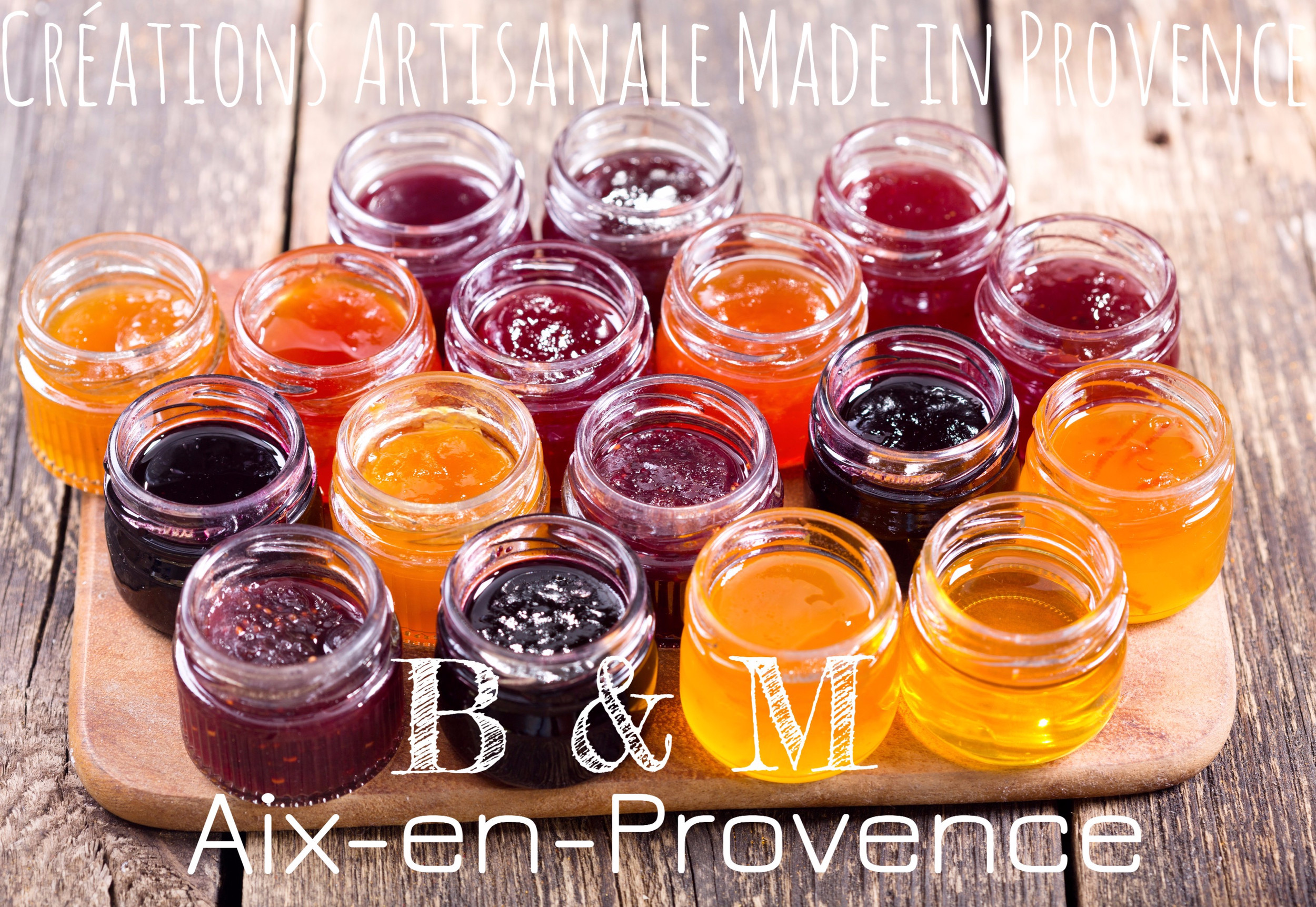 Découvrez les créations artisanales B & M Aix-en-provence. Laissez vous séduire par nos délicieuses confitures maison, cuite au chaudron. Elaborée avec des fruits de saison du jardin et du verger issus de notre production en agriculture biologique.