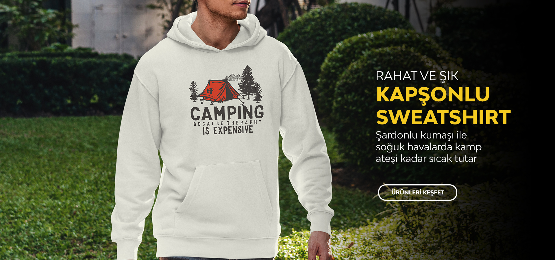 En iyi kalite pamuktan imal, organik sertifikalı boyalar ile basılan her biri bir hikaye anlatan kamp ve doğa temalı baskılı tişörtler.