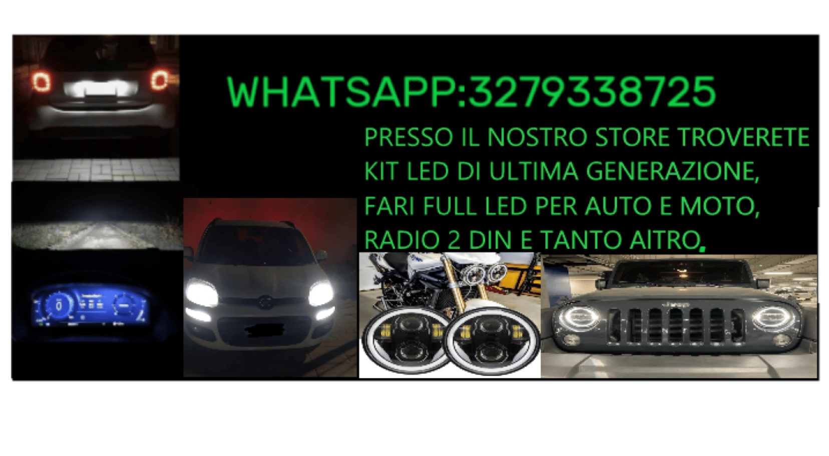 LUCI LED PER AUTO E MOTO, KIT LED FIAT 500-500X-500L, FARI COMPLETI MOTO DUCATI MONSTER 600-620,FARI HONDA HORNET, FARI HARLEY DAVIDSON