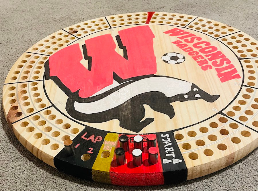 King sized crafted cribbage boards. Shop in stock boards or order custom. Eighteen inch wide extra large round boards. Great unique gift idea.
