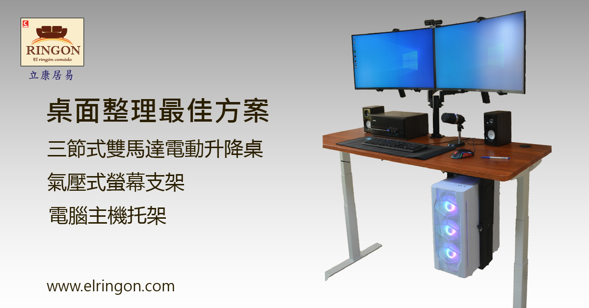 現在人長時間坐著辦公對人體脊椎造成嚴重傷害,【El Ringon 立康居易】 提供三節式雙馬達電動升降桌,氣壓式電腦螢幕支架等產品,提供長時間辦公的用戶一個最佳選擇,電動升降桌觸控面板有三組記憶功能,一鍵升降至適合的辦公姿勢位置。另外有這款電動升降桌有定時記憶功能,隨時提醒您變換站姿辦公,舒展筋骨。