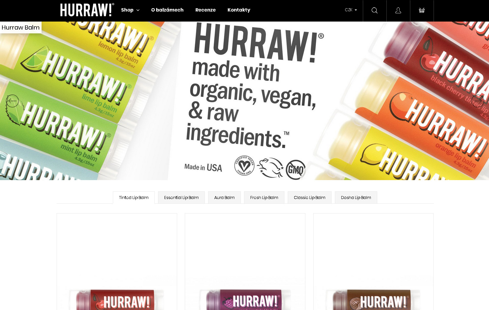 Hurraw! balzámy na rty. Veganské, čistě přírodní, lisovány za studena, fair trade obsahující prvotřídní suroviny. Netestováno na zvířatech.