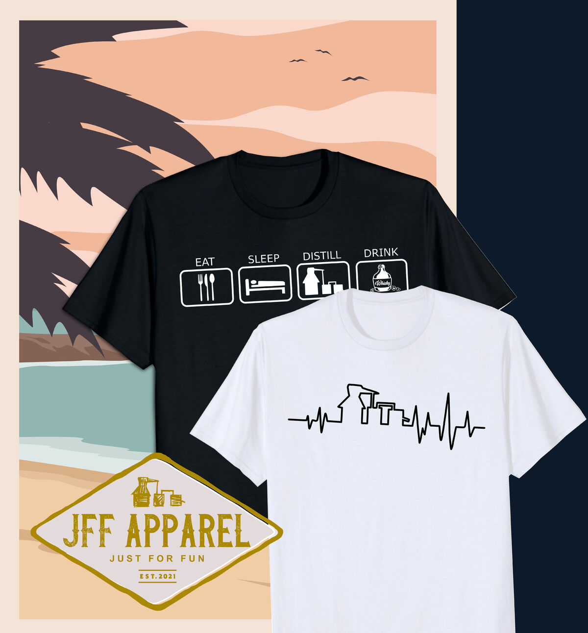 Shop high-quality unique tees and apparel, designed with the home distiller & moonshiner in mind, by independent artists for and on behalf of JFF Apparel.