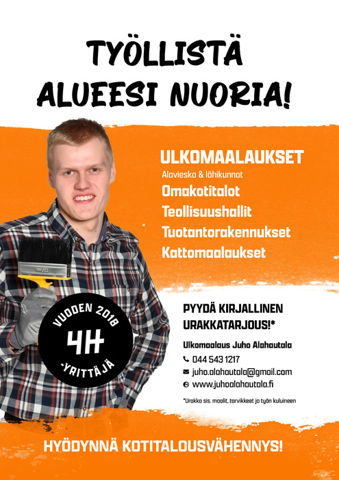 Juho Alahautala on Ylivieskan seutukunnassa toimiva nuori yrittäjä, joka harjoittaa julkisivumaalausta. Pääasialliset työkohteet ovat omakoti- ja rivitalot sekä maatalouden ja teollisuuden tuotantorakennukset.