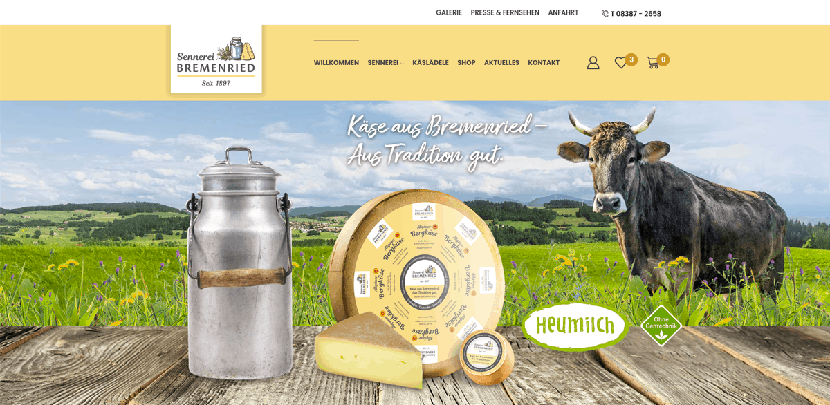Käse Online Shop der Sennerei Bremenried im Allgäu. Heumilch Käse nach alter Tradition und überlieferten Rezepten online bestellen.