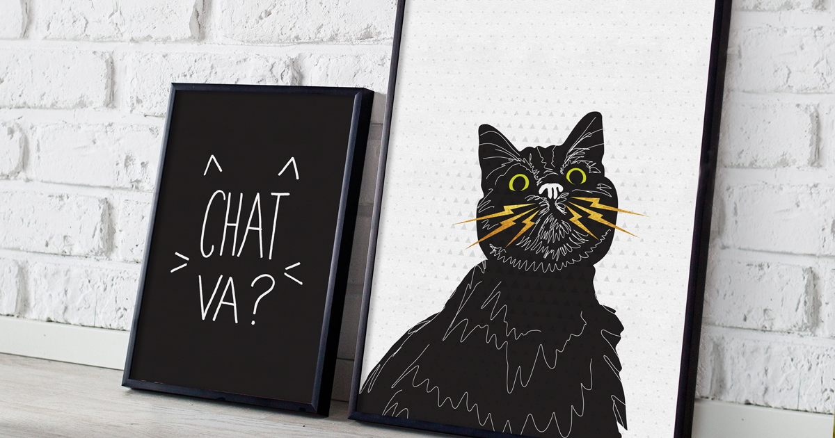 Keywords: illustration, dessin, affiche, poster, chaton, cat, cadre, boutique, achat, purr