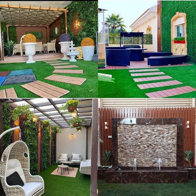 عشب صناعى - عشب طبيعى - عشب جدارىشبكات الرى العادية والاتوماتيك شلالات جدارية - نوافير - مظلات حديد وخشب ممرات - ديكورات خشبية وحجرية - بحص جميع انواع النخيل والورود المثمرة والنباتات