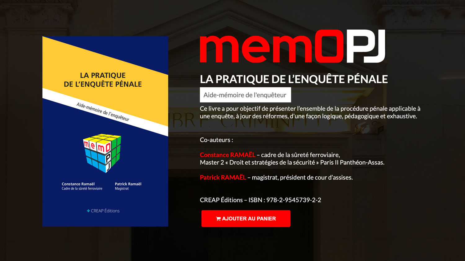 Livre présentant l’ensemble de la procédure pénale applicable à une enquête, à jour des réformes, d’une façon logique, pédagogique et exhaustive.