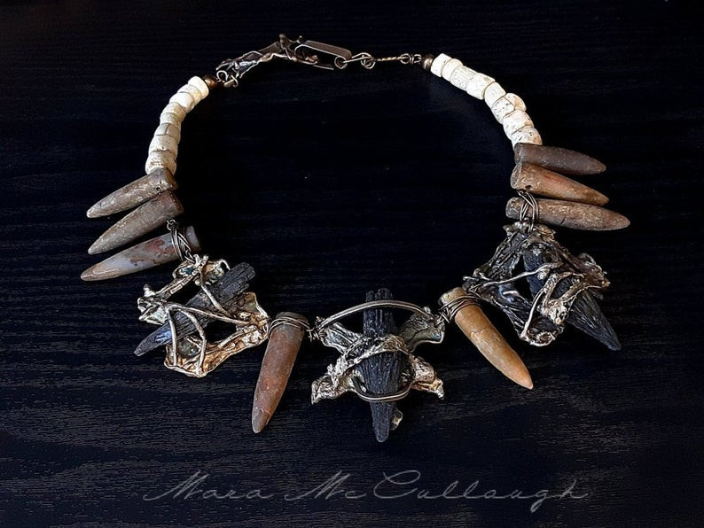 One of a kind Jewelry, Old Collectible beads, Postapocalyptic, urban, modernist, Mara McCullough, Metalperlsfireandstone