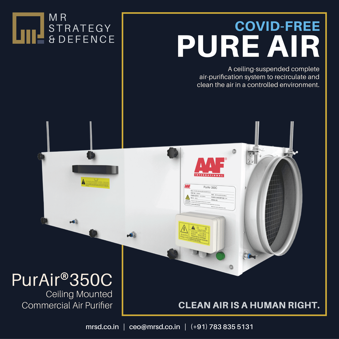 Pure Air | COVID control | Air Purifier | Filter thatcan prevent spread Virus | AIR Purity with HEPA and ULPA | MR Strategy and Defence LLP | New Delhi |