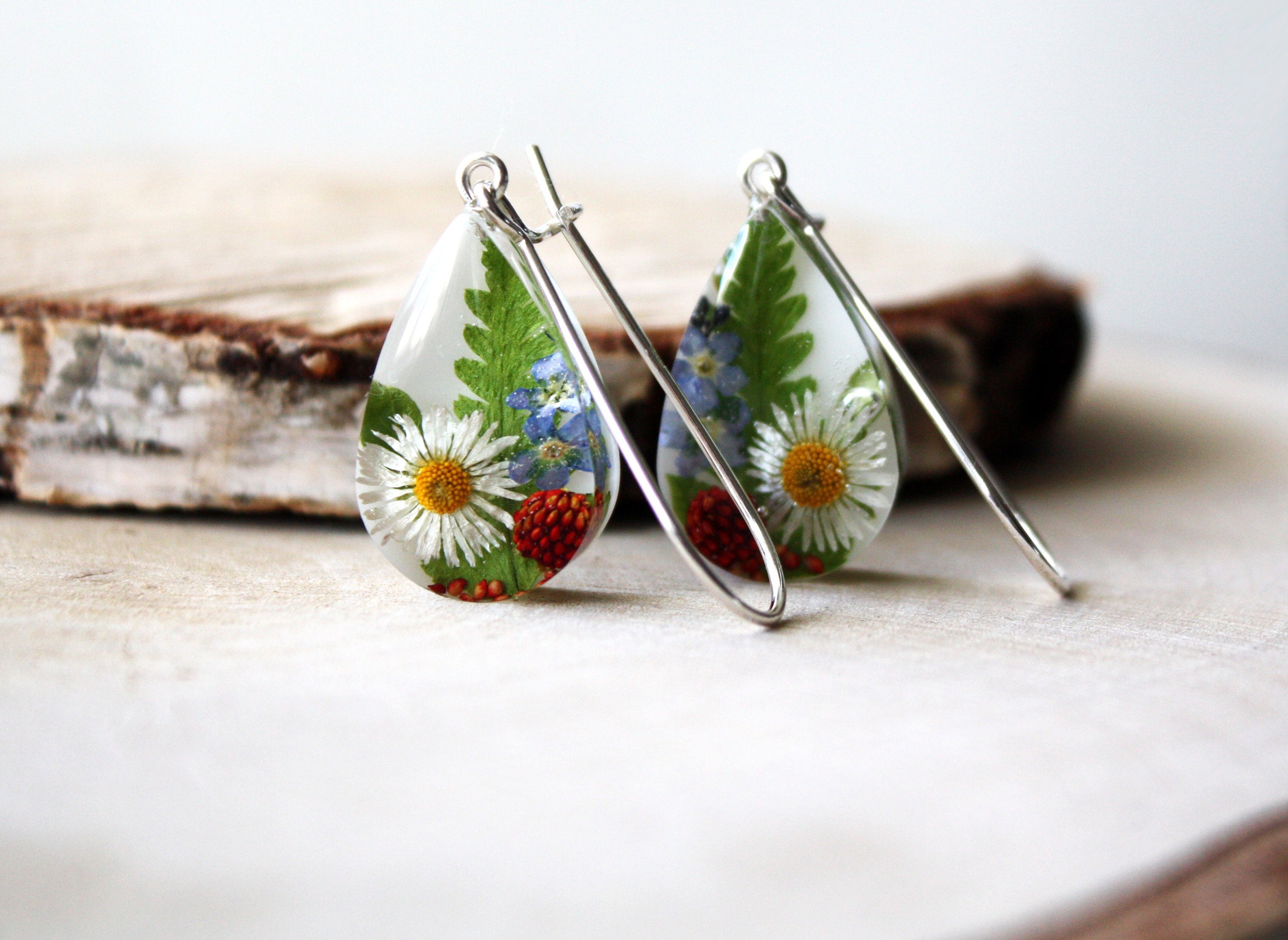 Handmade Resin Jewelry with Real Flowers and Plants.