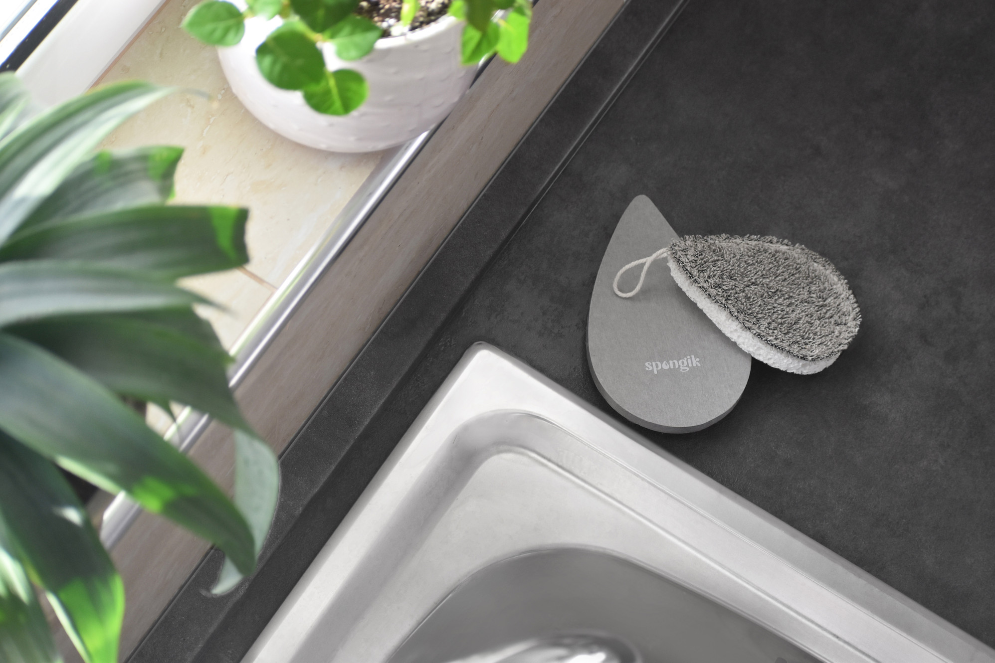 Spongik is 100% natural & biodegradable cellulose + hemp sponge, infused with natural dishwashing soap. It's smart feature notifies when to replace the sponge. And the dryer sanitizes the sponge between uses.