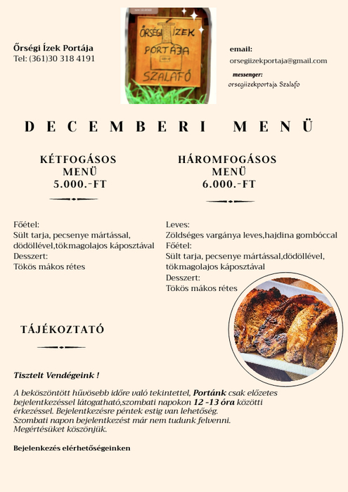 Őrségi kirándulása során, amennyiben a hagyományos éttermek kínálatán túlmenően szeretne megismerkedni a tájegységre jellemző autentikus házias ételekkel, akkor szeretettel invitálom a falusi hangulatot idéző Őrségi Ízek Portája - Lakáséttermünkbe. Ismerje meg az őrségi dödöllét, a tejfölös hajdinás vargányalevest, a borsús ( babos ) káposztát, a...