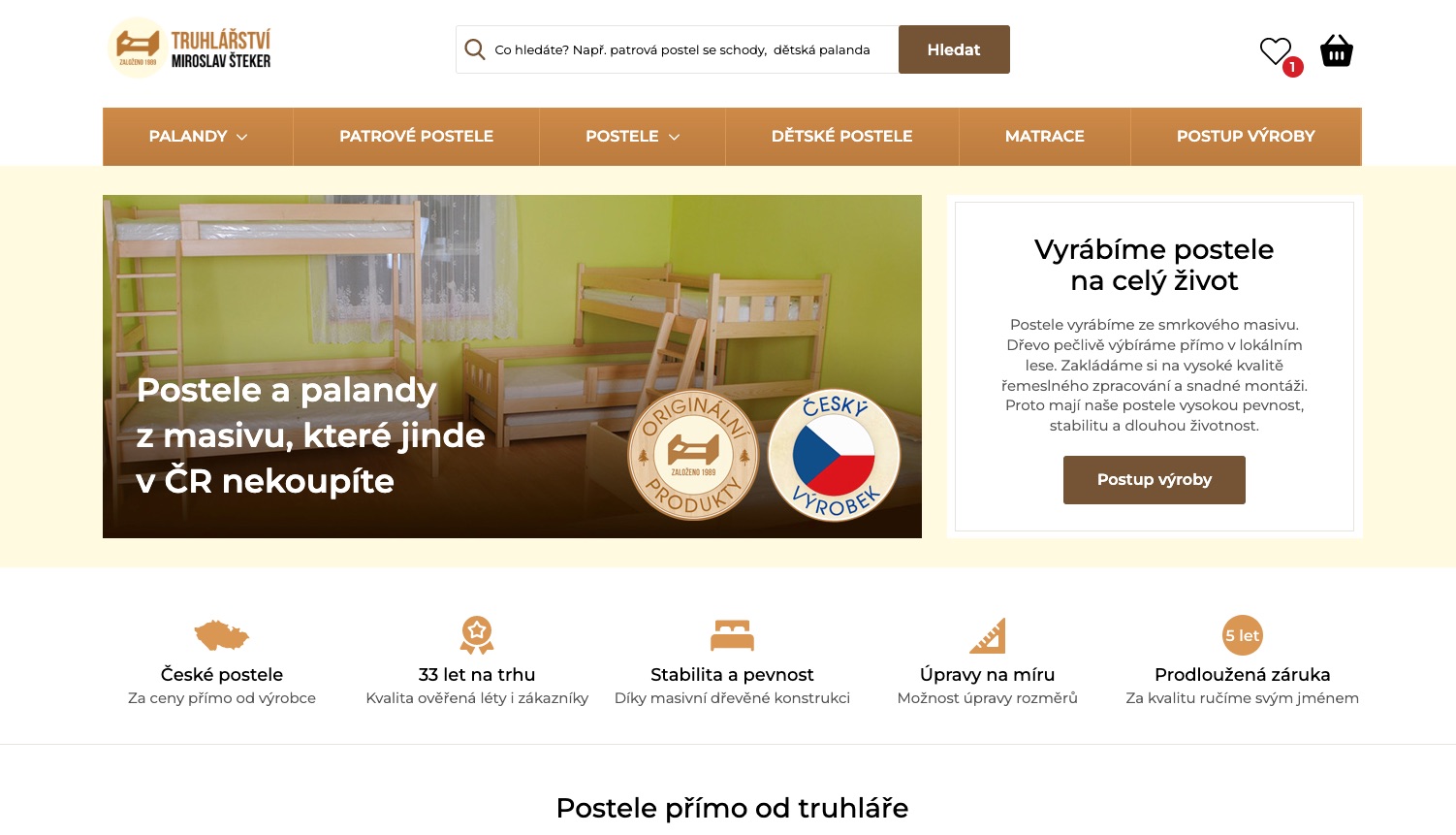 Postele a palandy z masivu, které jinde v ČR nekoupíte. Nabízíme individuální úpravy, kvalitní produkty z masivu a prodlouženou záruku na 5 let. Poznejte rodinné truhlářství z Vysočiny.