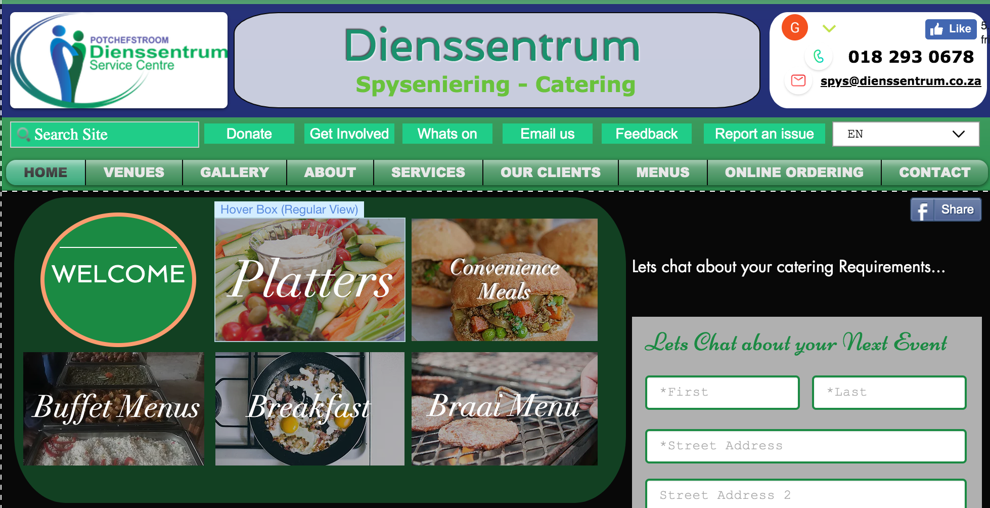 Catering Division on the Potchefstroom Service Center / Dienssentrum. Order online. Check out our Menus. Meet our team.