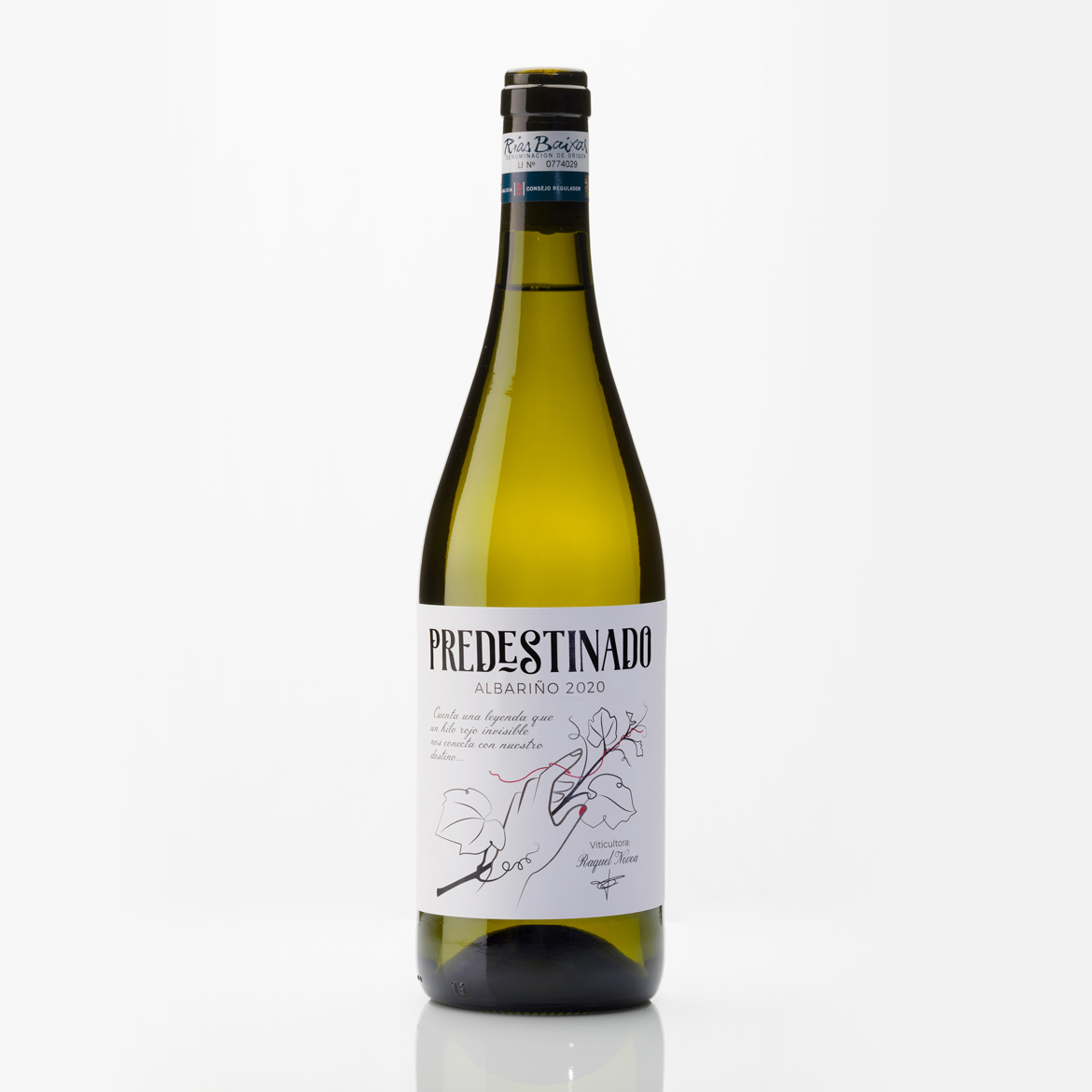 Keywords: vino, blanco, albariño, denominación, origen, Rías Baixas, monovarietal, viticultora, vino de autora, Predestinado, añada 2020, perfecto, celebraciones
