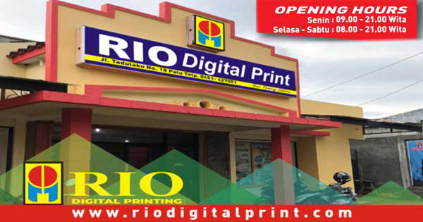 Rio Digital Printing adalah perusahaan yang eksis di bidang digital printing sejak tahun 1998. Perjalanan yang panjang terus memperkaya pengalaman dan pengetahuan kami untuk senantiasa memberikan solusi terbaik dalam dunia digital printing. Kami juga sangat berkomitmen untuk memberikan pelayanan yang terbaik, penuh dengan ketulusan untuk kepuasan pelanggan. Dengan berbekal pengalaman, pengetahuan dan komitmen tersebut kami berupaya untuk memenuhi setiap kebutuhan pelanggan dengan produk yang berkualitas, harga yang murah serta proses yang cepat.Kami terus berinovasi menjawab berbagai tantangan, oleh karena itu di tahun 2020 dengan bangga kami melakukan launching riodigitalprint.com. Kehadiran riodigitalprint.com memberikan beragam kemudahan kepada pelanggan dalam mengenal jenis dan detail produk, memilih produk sesuai kebutuhan, melakukan customize sesuai keinginan, melakukan transaksi (online-order), bank-transfer dan produk pilihan Anda akan dikirim ke alamat yang dituju. Sebuah kenyamanan maksimal bagi Anda, pelanggan kami yang berharga.