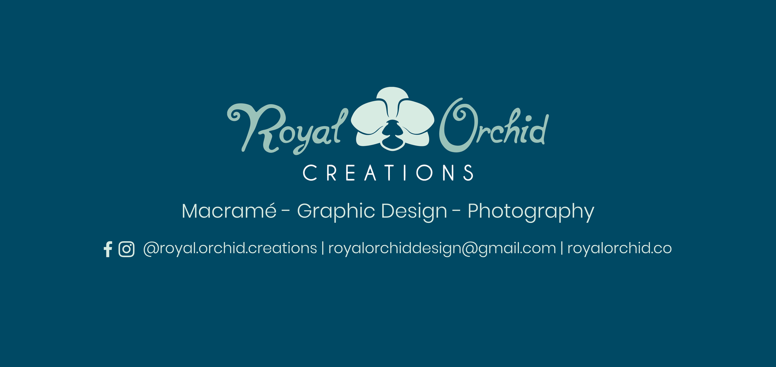 Royal Orchid Creations is a creative services company offering graphic design, photography and hand-made macramé pieces. We specialize in vector graphics, fine art photography, macramé art & goods, and creating custom designs for business cards, brochures, rack cards, print ads, signage and more.
