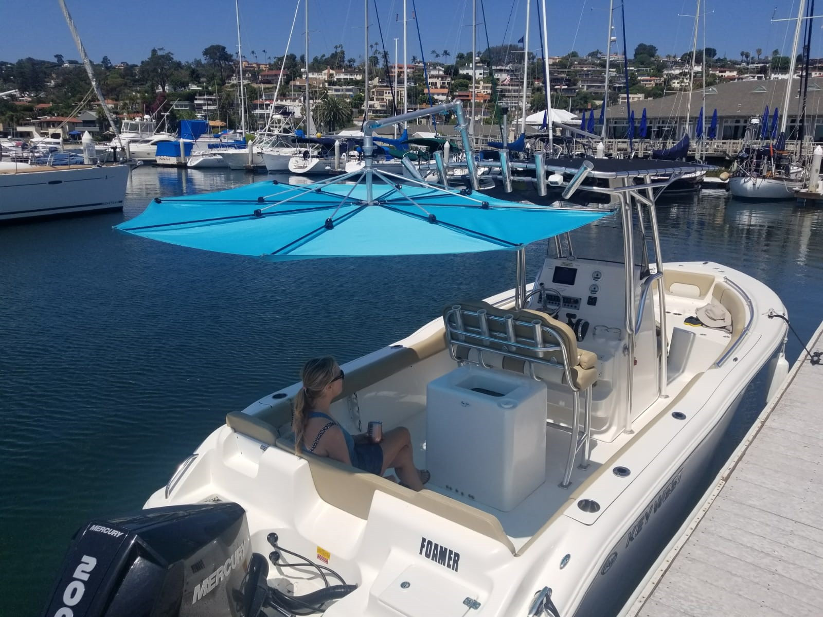 Rocket Shade is our foundation design concept of boat shade that integrates with a T-top rod holder. It is strong, portable, lightweight and simple to use with fail-safe operation. Our shade quickly adjusts to provide UV protection when and where you need it.