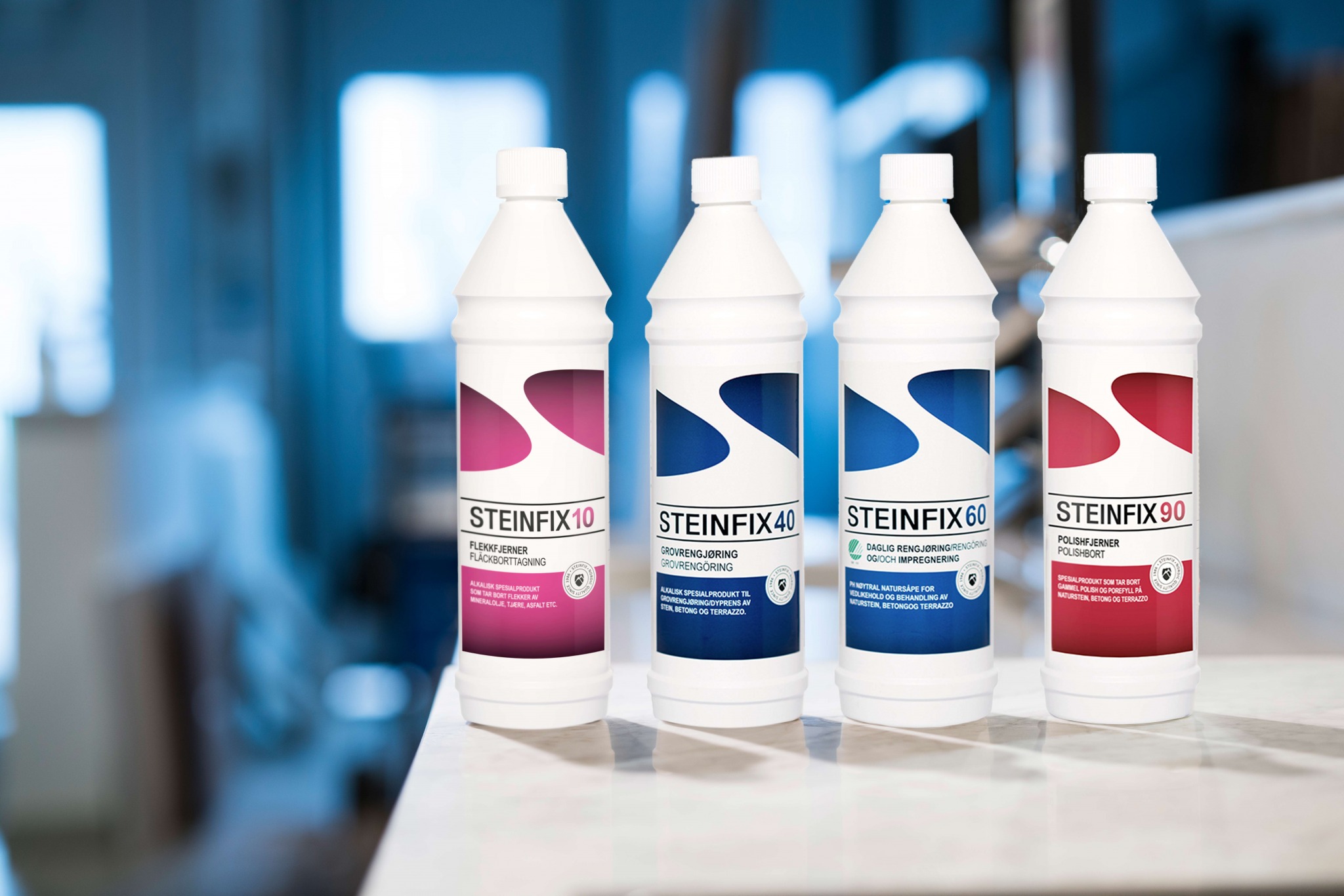 Med STEINFIX kan du enkelt impregnere, polere, rengjøre og ta bort flekker på naturstein, betong, terrazzo, fuger og keramisk flis.