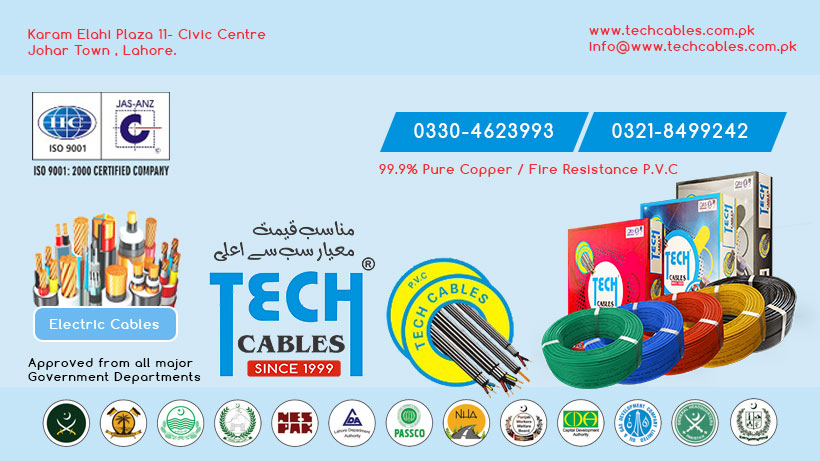 Tech Cables provide 99.9% Pure Copper high quality cable and most trusted electrical cable manufacturer in Pakistan Since 1999, Electric Wires
