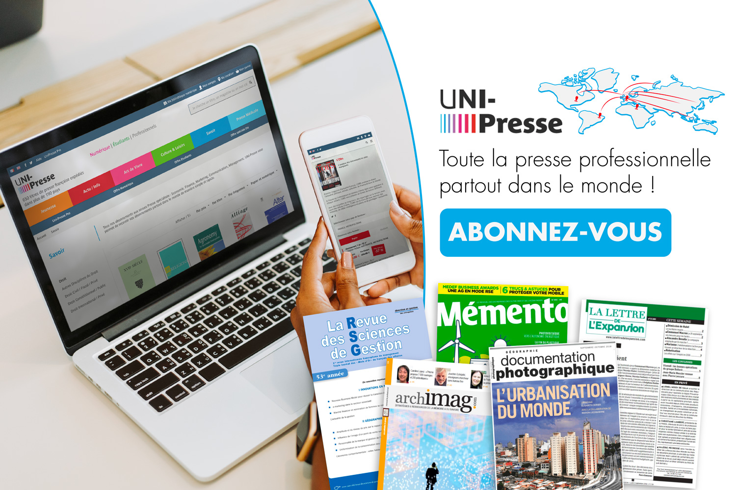 Subscribe to French Magazines and Newspapers with UNI-Presse ! Children and Teens, News, Lifestyle, Culture and Leisure, Knowledge, Medical Press reviews.