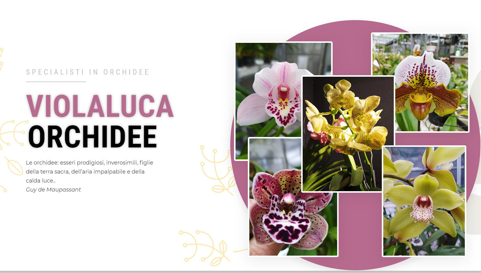 SPECIALISTI IN ORCHIDEE VIOLALUCAORCHIDEE Le orchidee: esseri prodigiosi, inverosimili, figlie della terra sacra, dell’aria impalpabile e della calda luce..Guy de Maupassant VAI AL CATALOGO Chi siamo La ditta Violaluca Orchidee e’ nata il 16 Settembre 2009 al compimento dei 40 anni del suo titolare Sergio Davide Sommariva. Egli ha sempre lavorato fin da giovane nella […]