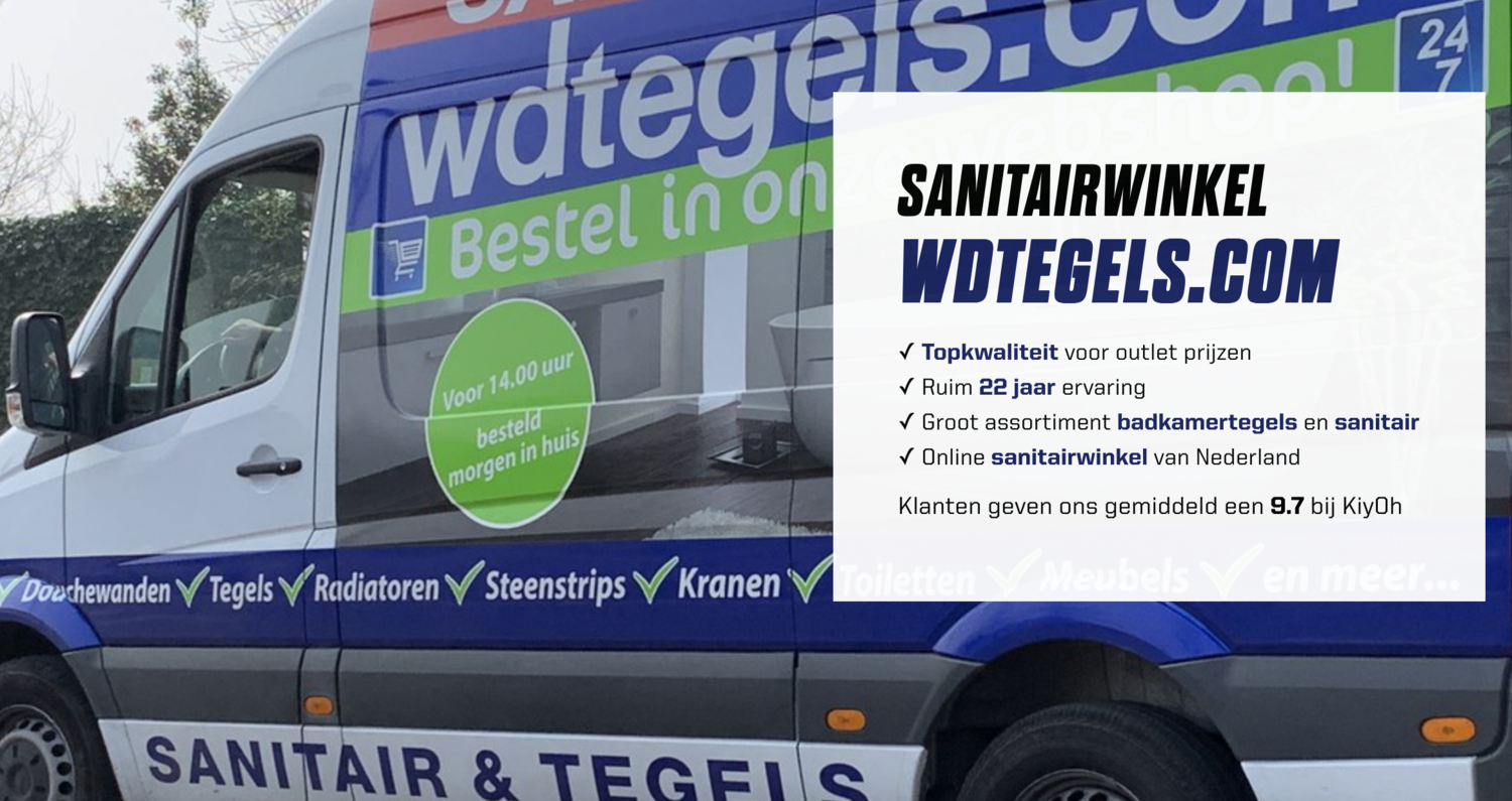 WDTegels.com Sanitairwinkel ✓ Breed assortiment ✓ Snelle levering ✓ Gemiddeld 9.4 reviews ▻ Bestel eenvoudig sanitair en badkamermeubels bij WDTegels.com