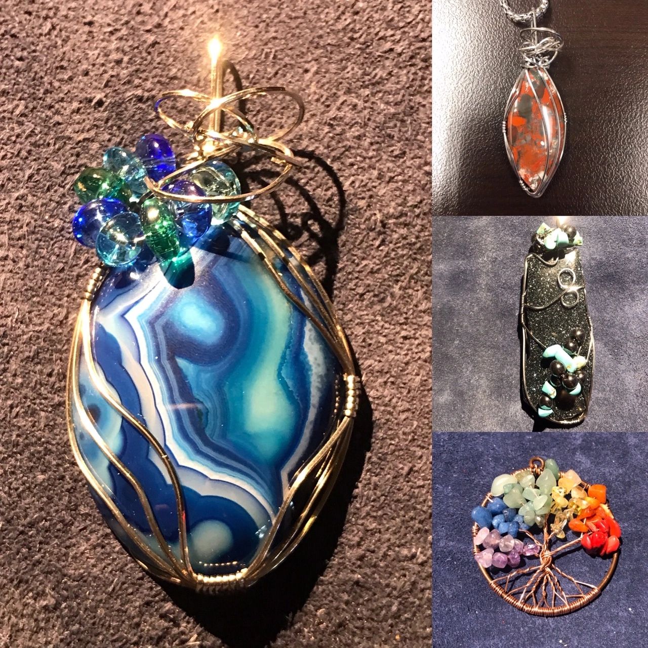 Hand crafted Jewelry for any occasion. One of a kind wire wrapped stones to add to any look. Great for females and males alike.