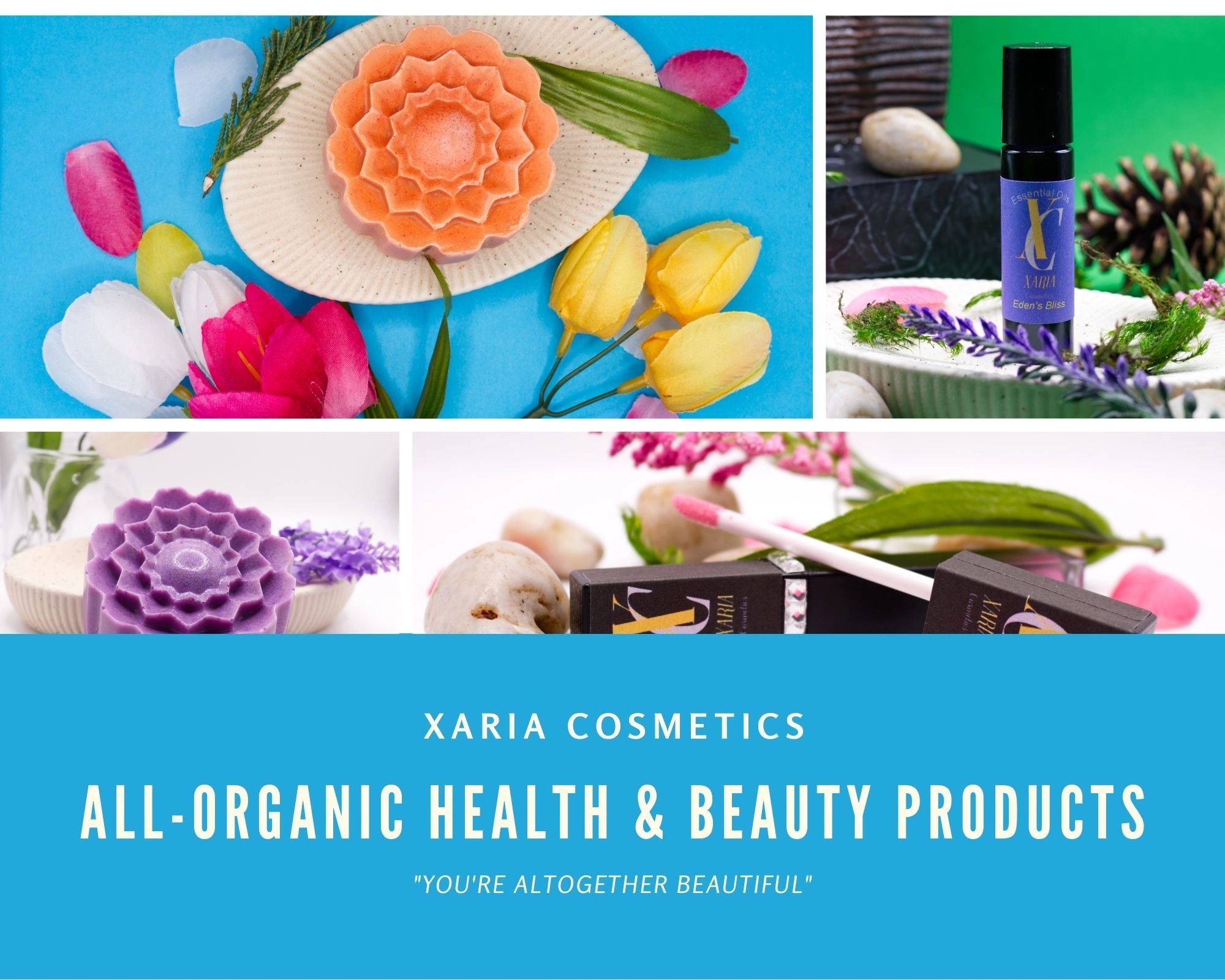 Xaria Cosmetics specializes in organic health and beauty products.
