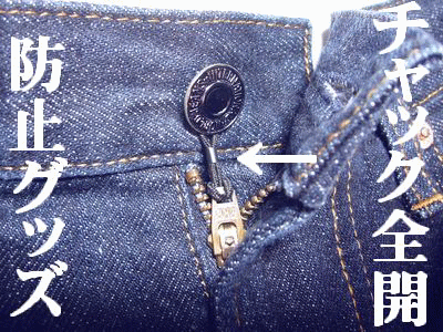 これがあれば「あ、チャックちゃんと閉まってるかな!?....」なんて焦ることはもうありません。貴方のチャックをしっかりガードします。ジーンズにもスラックスにもスカートにも使えます。